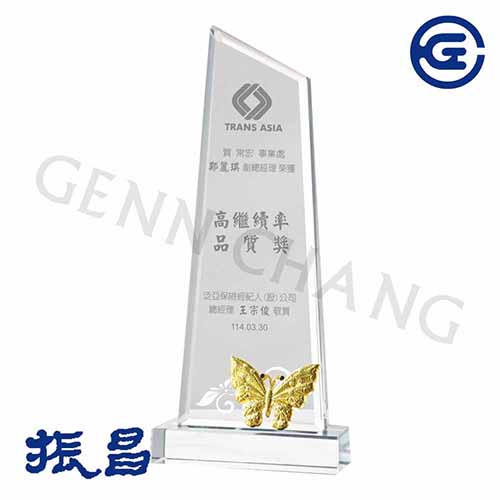 材質:水晶+金屬尺寸:10X23cm ※透明水晶雷刻後會呈現淺白色,如需上色費用另計。※ 此金屬配件為平價金屬,金屬上有水紋、不平滑 屬正常出貨品,可接受此平價金屬品質在行訂購。◎產品大多以手工承製,顏色尺寸僅供參考,敬以實品為準, 本公司保留變更之權利,如有更改恕不另行通知。